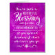 Diga a alguém que você está pensando neles e que bênção eles são em sua vida com esta elegante design de tipografia tipográfica estilo de letras. Frente de cartas mostra a mensagem em branco, "Você é uma benção tão maravilhosa para todos que o conhecem e vocês espalham gentileza e alegria aonde quer que vá." Design aparece no fundo de cor d'água roxa com textura digital. A dentro inclui esta mensagem, mas pode ser personalizada para ajustado de suas próprias necessidades: Pensar em você e que presente incrível de Deus é chamá-lo de meu amigo. Agradeço e admiro-te cada vez mais todos os dias!