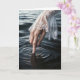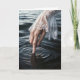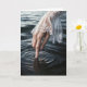 Uma mão delicada, enfeitada com rendas, mergulha suavemente um dedo em água escura e ondulante, criando círculos concêntricos sutis. Todo o texto pode ser alterado.