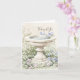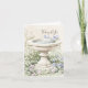 Cartão de saudação "Pensando em Você" com ilustração de pintura aquarela de um banho de pássaros cercado por um jardim de flores azuis e rosas e folhagens crescendo em torno da base do banho de pássaros. A folhagem é representada em vários tons de verde. Um fundo de aquarela bege neutro e cores pastéis e suaves contribuem para uma estética serena e suave. A frase "Pensando em Você" em um script fluído e manuscrito no canto superior direito da imagem. Uma ilustração serena complementada por uma mensagem calorosa e sentimental. O fundo de aquarela neutro é repetido no interior esquerdo. O cumprimento personalizado "Enviando pensamentos felizes ao seu caminho hoje" é exibido no interior direito e a ilustração do banho de pássaros é repetida no canto inferior esquerdo com espaço entre o cumprimento e a ilustração