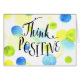 Citação inspiradora da caligrafia moderna - pense positiva - no fundo de pontos de aquarela azul e verde| Bigstock® - Todos os direitos reservados.