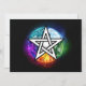 Pentagrama luminoso desenhado artificialmente com cinco elementos mágicos, água, terra, fogo, astral, ar sobre fundo negro. Pentagrama Wiccan. Wicca