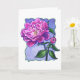 Pensão cor-de-rosa no cartão de saudação personalizável de arte azul mostra nossa arte original de um povo rosa em um fundo texturizado azul. Dentro é uma mensagem personalizável de Dia de as mães Feliz que mostra a sua mãe, mãe, mãe o quanto você se importa e o quanto você a ama. Perfeito para Dia de as mães, ou aniversário de Mãe, ou qualquer dia que você quiser que sua mãe se sinta especial e que a deixe saber o quanto ela significa. Também uma excelente para quem ama peônias e todos os amantes de flores. Você nunca pode errar com um dom de flores.