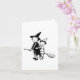 Uma pequena bruxa e palhaço numa vassoura. Este design parece realmente eficaz com este Cartão de Saudação