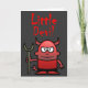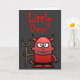Um pequeno demônio vermelho com garfo. Um design divertido para qualquer pequeno diabo! O dentro do cartão diz: Feliz Aniversário.