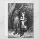 Esta design apresenta uma ilustração do clássico conto de fadas infantil "Chapeuzinho Vermelho". As duas versões mais conhecidas do conto de fadas foram escritas por Charles Perrault e os irmãos Grimm. Esta ilustração clássica foi desenhada pelo famoso artista francês Gustave Doré (1832-1883), que ilustrou muitos livros para adultos e crianças. Nessa cena, Alice e o lobo estão encarando em direções opostas, mas ela está encarando diretamente os olhos do lobo, sem medo do animal selvagem. Ela é uma garota corajosa e confiante. Alice está vestindo um vestido antigo tradicional. A cauda longa do lobo e as pernas longas podem ser vistas claramente, e as orelhas da criatura são picadas para cima.