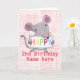 Um rato adorável e bonito diz Feliz Aniversário. Personalizável com a idade e o nome da criança. O dentro lê, Tenha um dia super fabuloso!!!, que também é personalizável com suas próprias palavras