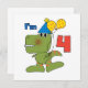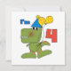 Pequeno Dino 4º Aniversário T-shirts, fatos-chave, cartões, autocolantes, botões de aniversário, sacos de tota, keepsakes, e outros roupa de 4º aniversário do dinossauro e presentes com um dinossauro sorridente verde com balões, chapéu de festa e um presente!