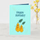 Cartão de aniversário com peras amarelas engraçadas