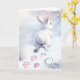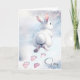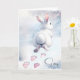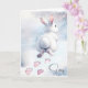 Um coelho branco flufficado se liga através de uma paisagem víbora e nevada, deixando atrás de pegadas cor-de-rosa em forma de coração. Todo texto é editável.