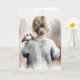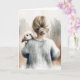 Uma jovem menina com cabelo loiro preso em um coque segura um coelho branco fofinho de orelhas caídas sobre o ombro, criando uma cena terna e serena.
