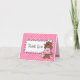 Nossos cartões personalizados de agradecimento para crianças são perfeitos. Apresentando um ursinho feliz vestindo um chapéu de chef e avental xadrez rosa com cupcakes e cerejas. Fundo pontilhado de rosa com cupcakes e cerejas. Personalize com seu próprio texto. O ursinho é móvel e redimensionável. Etiquetas coordenadas, convites para festas, postagem, camisetas e presentes também disponíveis. Original PinkInKArt!
