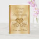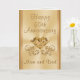 Cartão Personalizado de Aniversário de Casamento de 50 anos para os Pais. Digite sua mensagem especial de aniversário de 50 anos para sua mãe e pai na caixa de texto à direita (clique em "abc Personalize este modelo"). Lindas cores douradas sobre dourado para representar o aniversário de casamento de ouro dos seus pais. LIGUE para a Designer Linda: 239-949-9090 para criar presentes personalizados e suprimentos para festa de aniversário de 50 anos de casamento.