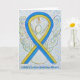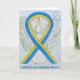 A saudação ou o cartão de anjo da guardiã apresenta a imagem de um painel de reconhecimento azul e amarelo. Fita de sensibilização azul e amarela significa apoio a crianças com Síndrome de Down. Adicione suas próprias palavras ou mensagem opcionais ao cartão de saudação para os anjos-arte personalizados! Você também pode remover o texto de uma nota de anjo somente de arte. Os cartões de saudação de pintura de arte de anjo de consciência azul e amarelo podem ser personalizados com mensagens personalizadas para fazer com que o conhecimento do excelente cause cartões de arte para angariadores de fundos, presentes de conscientização ou outros eventos especiais. Dê a este cartão de arte anjo um presente de fita de consciência para qualquer ocasião.