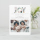 Cartões de natal impressionantes da tipografia JOY Cartão Personalizado Foto - Cartão com fotos Feriado de Ricaso - este Cartão Personalizado Fotográfico é certamente um sucesso para a família e amigos ... fácil de adicionar seu próprio texto e fotografia - Envie suas saudações em estilo este feriado com um cartão personalizado apresentando um design de texto maravilhoso à frente e um padrão de coordenação para o dorso - desenhado com holly, peras, mortes em ouro e verde cores estivas