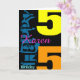 Cartão de saudação personalizável de 55º aniversário com grande número (idade) e nome em cores amarela, laranja e azul. Você pode facilmente alterar o texto (cor, fonte, tamanho e posição) clicando no botão personalizar. Estão disponíveis outros modelos.