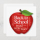 Personalize seu convite de volta às aulas com estilo com uma grande maçã vermelha para o professor. Leia, escreva, aprenda, descubra, explore, pense, raciocine, questione e estude.