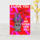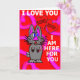 Cartão Personalizável Eu Amo Você Fita Rosa no Peito Cânc