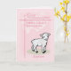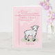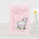 Um cordeiro doce está parado sobre um pedaço de grama com a palavra Batismo debaixo dele. Personalize esta placa cor-de-rosa para o Batismo da sua neta excelente. Adicione o nome dela e a data em que ela foi batizada como um belo cartão de manutenção!