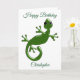 Birthday Card with a green gecko design that you can customize with any text of your choice. Should you require any help with customizing then contact us through the link on this page. Greeting card design by justbyjulie