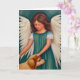 Põe um cartão de compaixão para alguém que perdeu um cachorro. Um anjo parado com um cão no Céu.