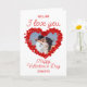 Este cartão do Dia dos Namorados apresenta uma tipografia vibrante manuscrita "Eu amo você" e "Feliz Dia dos Namorados" com uma foto em uma bela moldura em forma de coração com pétalas de rosa vermelha. Você pode personalizar facilmente o texto ou simplesmente excluí-lo.