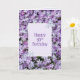 Flores roxas florescem em um jardim de verão com um quadro de lavanda e feliz 93º texto de aniversário
