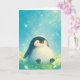 Um bebê pinguim fofinho senta-se pacificamente em um prado verde exuberante, banhado pelo brilho suave da luz solar quente. Os olhos do pinguim estão fechados, e um sorriso gentil ilumina seu rosto, exalando pura alegria e serenidade. Flocos de neve delicados flutuam pelo ar, adicionando um toque de magia à cena. O cenário apresenta um céu azul sonhador repleto de luz suave desfocada, criando uma atmosfera etérea e emocionante. Esta ilustração encantadora captura uma mistura caprichosa de inverno e primavera, tornando-a perfeita para os amantes da natureza e dos animais.