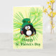 Cartão personalizado com um pinguim bebado segurando uma garrafa de bebida. Ruas engraçadas. Dia de Patrick. Projetada por Janet Palaggi