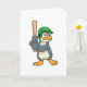 Cartão Pinguim no beisebol com taco de beisebol & Capacet