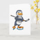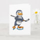 Cartão Pinguim no hóquei no gelo com taco de hóquei no ge