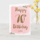 Personalized pink and gold 70th birthday card, which features a pink watercolor on the front against the gold glitter "happy 70th birthday". Please note there is not actual glitter on this product but a design effect. You will be able to easily personalize the front with her name. The inside reads a birthday message and the back can personalized with the year. This would make a sweet keepsake for her seventieth birthday.