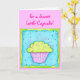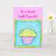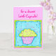 Card for a Happy Birthday or other occasions features a pink and light green cupcake on a turquoise background with a whimsy green border on a pink card. Saying "For a Sweet Little Cupcake" is fully customizable for personalization and message. Celebrate a birthday or other occasion with the whimsy cake and cupcake original art that is perfect for both boys and girls as well as adults. The colors are in both softer and more vibrant colors.