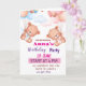 Um cartão de aniversário encantador com aquarela, apresentando uma mistura harmoniosa de tons pastel rosa e azul. O design apresenta elementos pintados à mão, como balões, bolos e caixas de presente, complementados por respingos lúdicos de texturas de aquarela. No centro, as palavras "Feliz Aniversário" são elegantemente escritas em uma fonte caprichosa, irradiando alegria e charme. Perfeito para tornar o dia especial de alguém ainda mais brilhante!