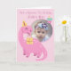 Celebrate a dino-mite little girl turning One with this adorable pink dinosaur birthday card! Featuring a friendly dino in party mode—complete with a party hat, gift, and a sweet smile—this design is perfect for toddlers who love animals and adventure. The soft pink background and whimsical details add charm and warmth, while editable text lets you personalize the card with her name or a special message. A delightful way to mark a big milestone with prehistoric cuteness!