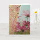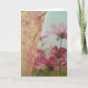 This is a photo I took of a photo of pink cosmos flowers on top of pink and gold stationery.