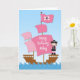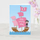 A birthday greeting with cute girl pirate on ship with pink sails. graphics ©Riefka Designs