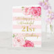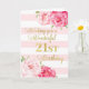 Cartão Pink Stripes and Flowers Happy 21st Birthday Card