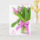 Pink tulip bouquet on white with polka dot bow for Name Day