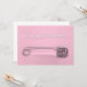 Um pino de segurança para bebês fixo a um tecido rosa com a palavra parabéns