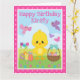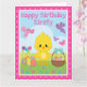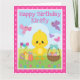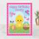 Cartão Pintinho de Páscoa branca e ovos de chocolate Aniv