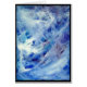 Azuis, brancas, roxo e vermelho são as cores principais desta pintura feliz, abstrata, acrílica da arte. Os cursos da pintura nesta pintura original da arte fluem na Web larga ou na nuvem como formas.