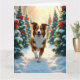 Uma pintura vibrante de um Australian Shepherd explorando uma fazenda de árvores coberta de neve. Esta obra de arte alegre e festiva captura a energia do inverno e a emoção de escolher a árvore perfeita.