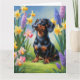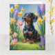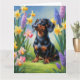 Cartão Pintura de Cachorro Dachshund com Flores de Primav