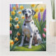 Cartão Pintura de Cachorro Dálmata com Flores da Primaver