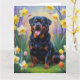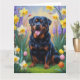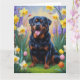 Cartão Pintura de Cachorro Rottweiler com Flores de Prima