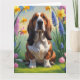 Cartão Pintura de flores da primavera do cão Basset Hound