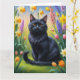 Cartão Pintura de Flores da Primavera do Gato Preto