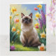 Cartão Pintura de Flores da Primavera do Gato Siames