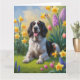 Um cão alegre senta-se pacificamente sobre a relva verde-luxuosa, rodeado por primavera coloridas floridas sob um céu azul macio. Esta pintura digital de óleo captura um momento sereno com pinceladas expressivas, cores quentes e um senso de alegria gentil.