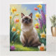 Um Gato alegre senta-se pacificamente sobre a relva verde-luxuosa, rodeada por primavera coloridas floridas sob um céu azul macio. Esta pintura digital de óleo captura um momento sereno com pinceladas expressivas, cores quentes e um senso de alegria gentil.